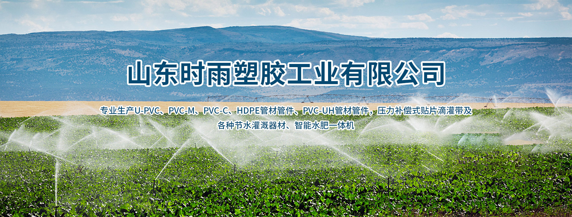 山東時雨塑膠工業有限公司主要生產滴灌管,滴灌帶,微噴帶,噴灌噴頭,壓力補償式貼片滴灌帶,pvc給水管材,pe給水管材管件,pvc-uh管材管件,水肥一體化,智能水肥一體化機器設備,砂石網式組合過濾器的專業生產廠家,萊蕪塑膠行業、萊蕪節水行業領頭企業。